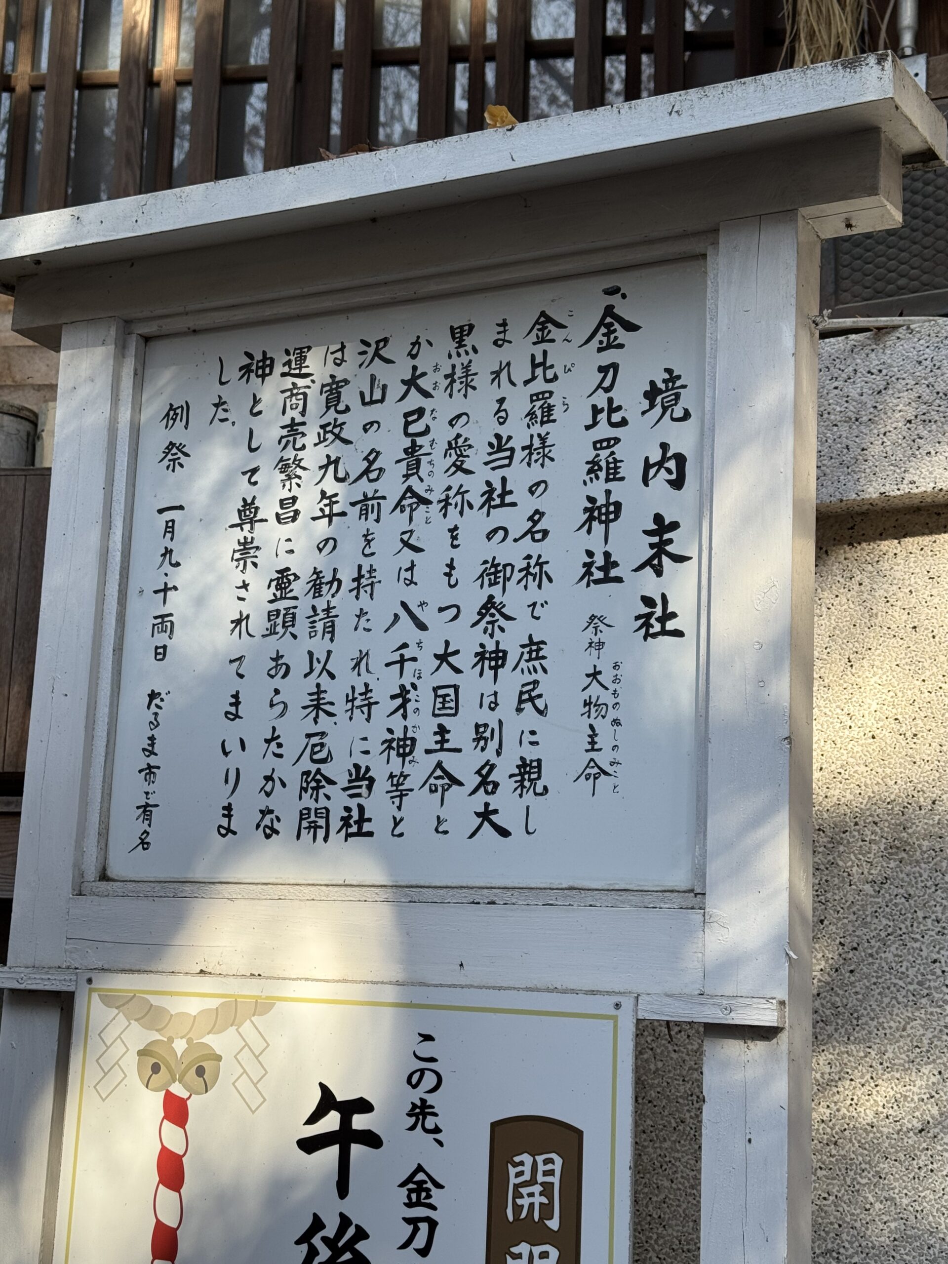 正面の奥の社が、大黒天様となっており、この方が大国主に相当するかなと思いました。