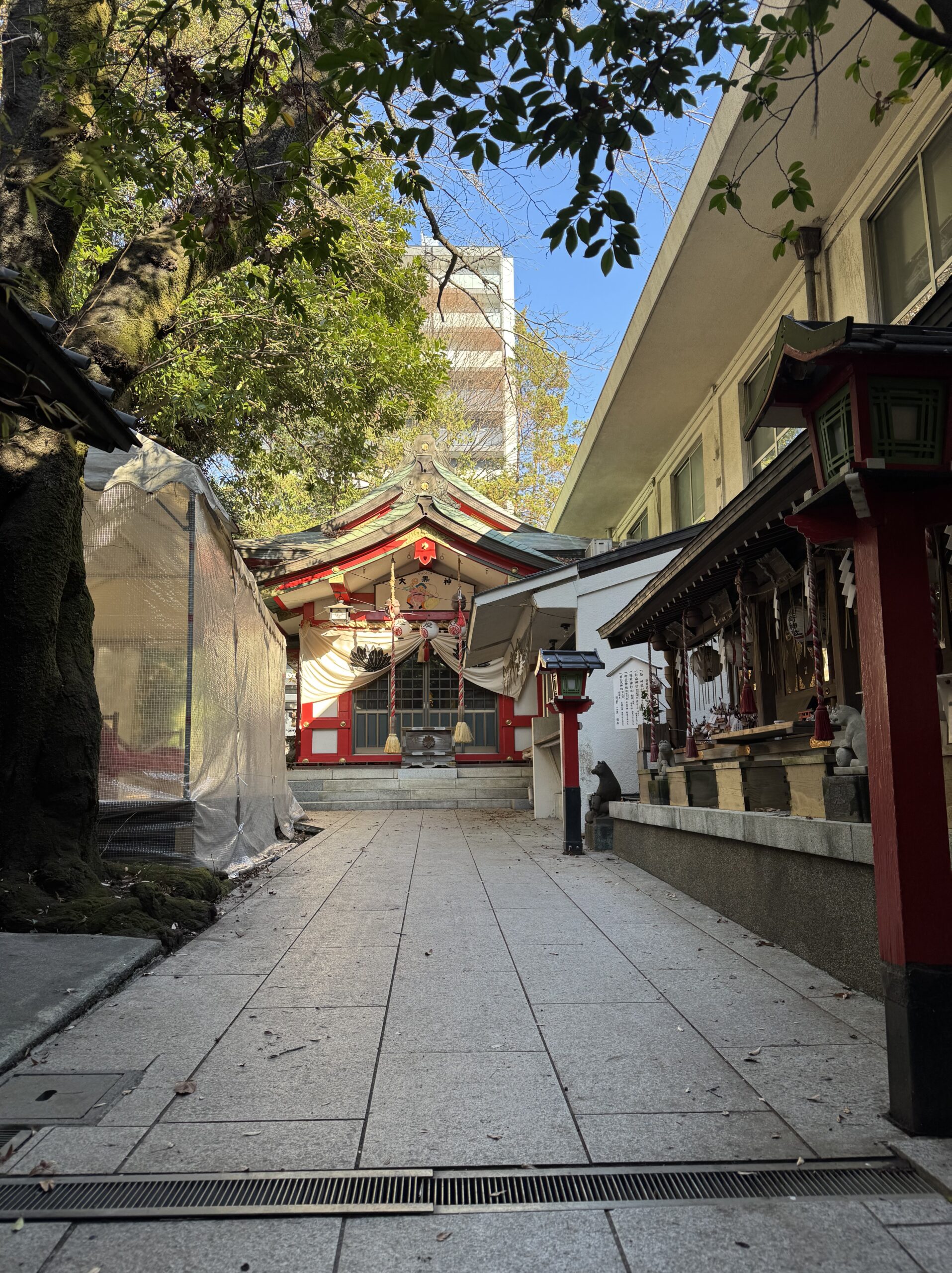 さらに本殿右奥に進んで行きます。三つ巴のマークがありますが、人代の守り手と言うような意味合いがあるように感じました。